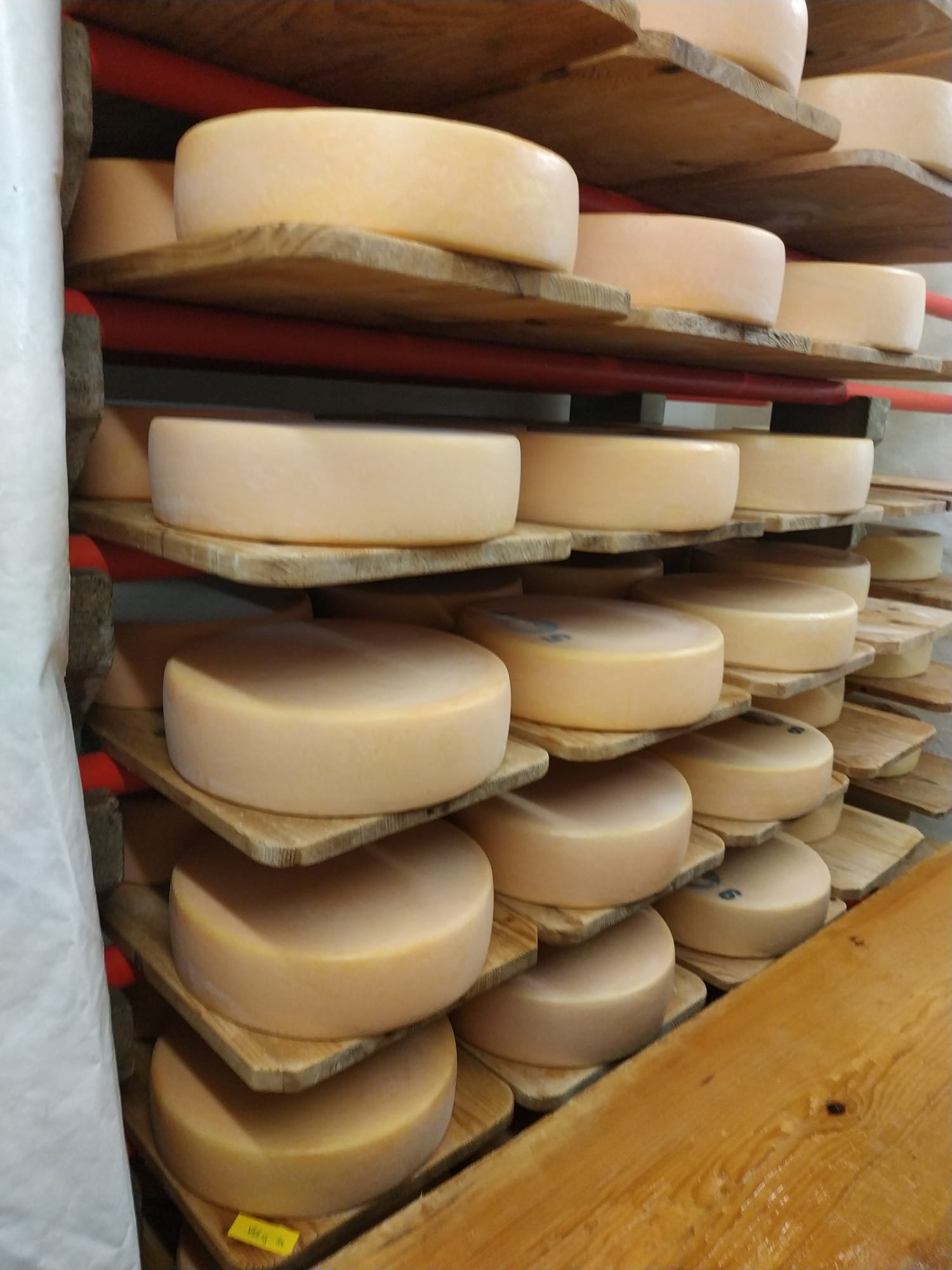 Gespeist an Leib und Seele geht es zur Klosteralp, wo es eine Führung in der Sennerei gibt. Eine Pracht, den Käse zu sehen, der in der letzten Zeit entstanden sind. Unsere Angestellte melkt die Kühe und bringt sie auf die Weide. Der Käser verarbeitet die Milch zu Käse. Besonders ist dabei, dass der Käse aus Rohmilch und hergestellt wird, auf die Gefahr, dass eine Serie misslingt. Mit grossem Eifer und Elan gehen sie an die Arbeit. Steckt da nicht eine grosse Freude und Begabung dahinter?