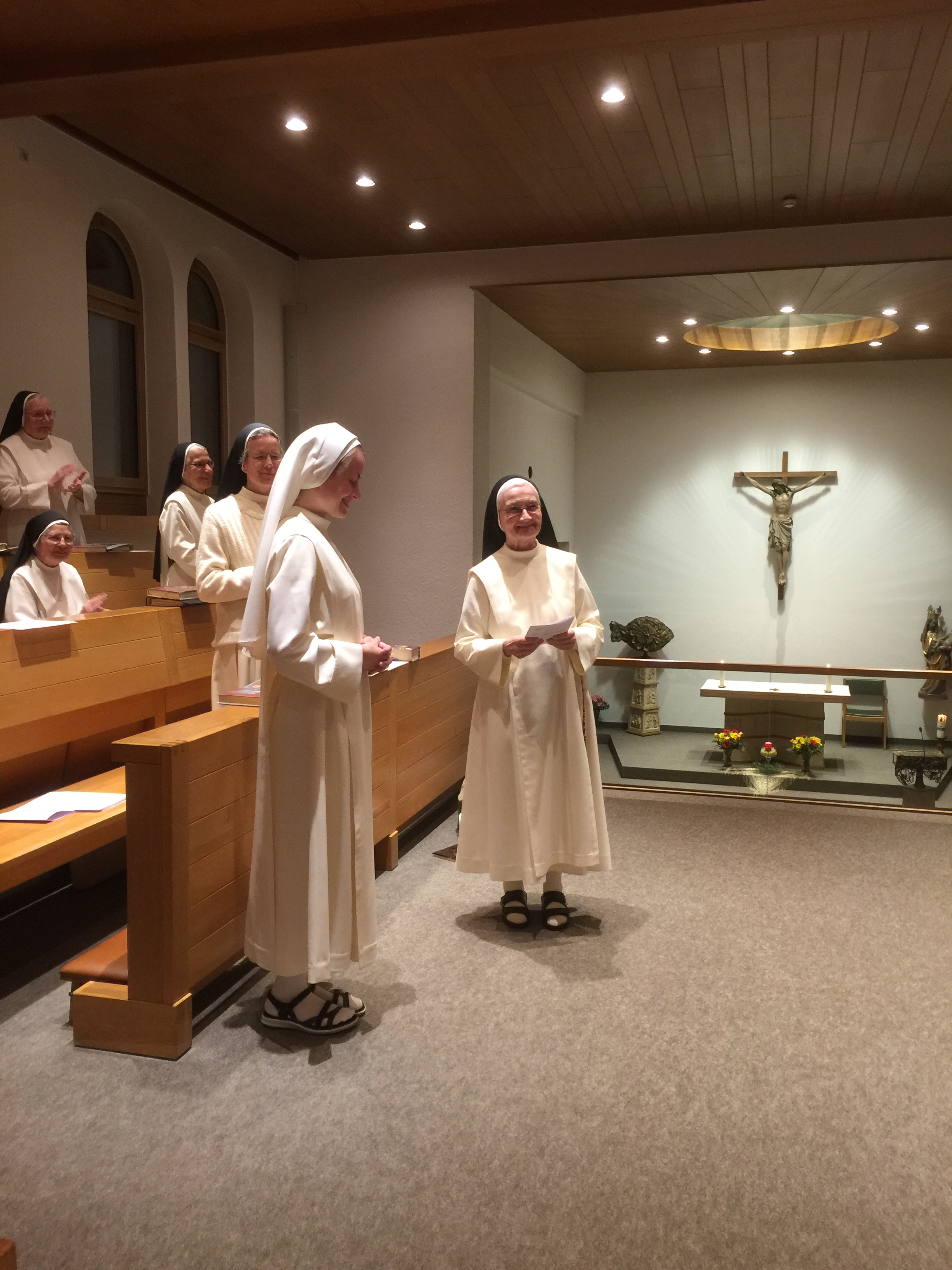 Im Psalm 45 heisst es weiter: «Vergiss dein Volk und dein Vaterhaus, der König verlangt nach deiner Schönheit.» Christus, der König des Himmels und der Erde möchte jeden von uns an sich ziehen. Er sieht uns mit seinen Augen, sieht die innere Schönheit und möchte uns immer mehr uns selbst werden lassen. In der Ordensberufung geschieht dies in besonderer Weise, darum «verlassen» wir «Volk und Vaterhaus», wir leben in einer konkreten Gemeinschaft, der wir nun angehören, um Gott und den Menschen zu dienen.