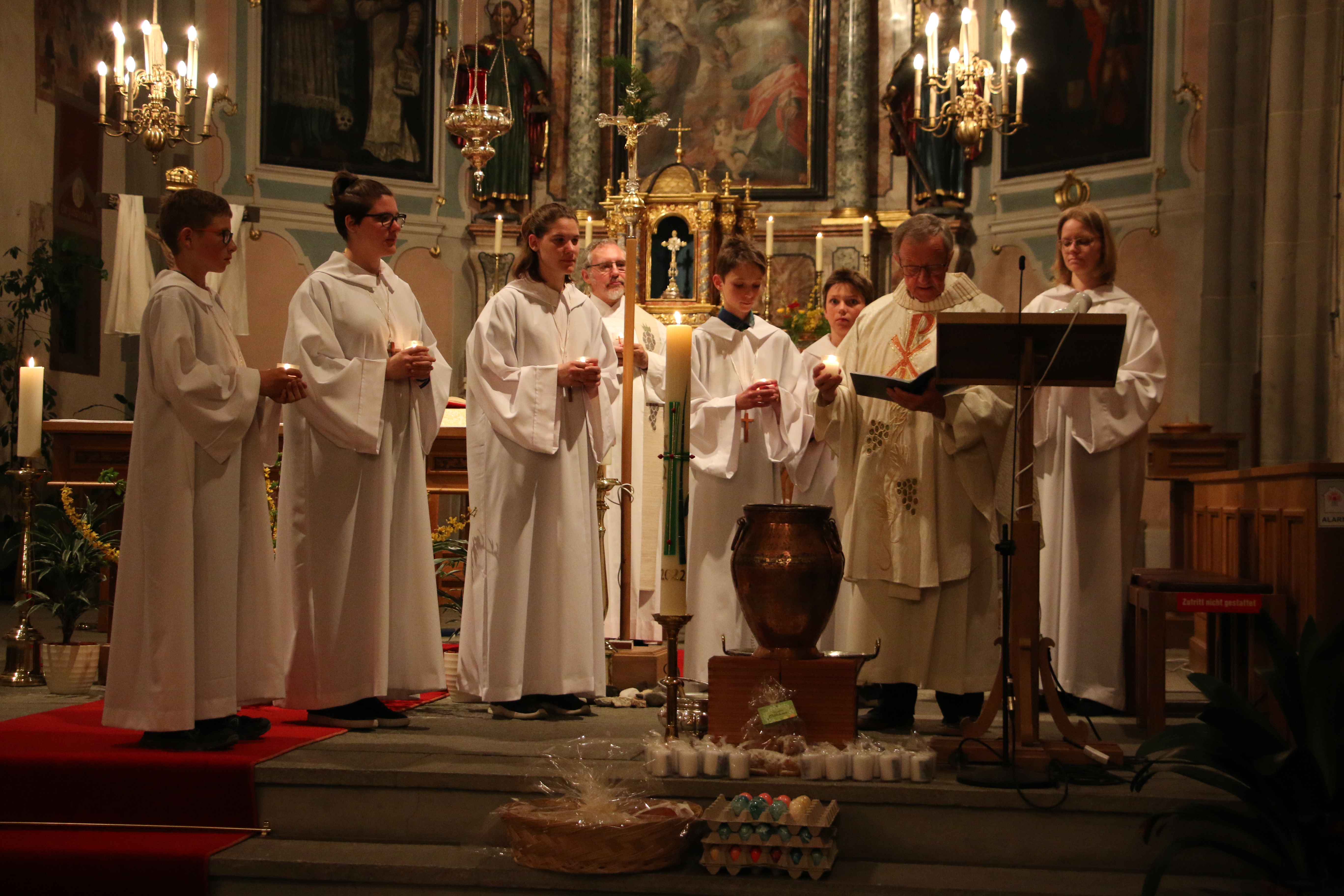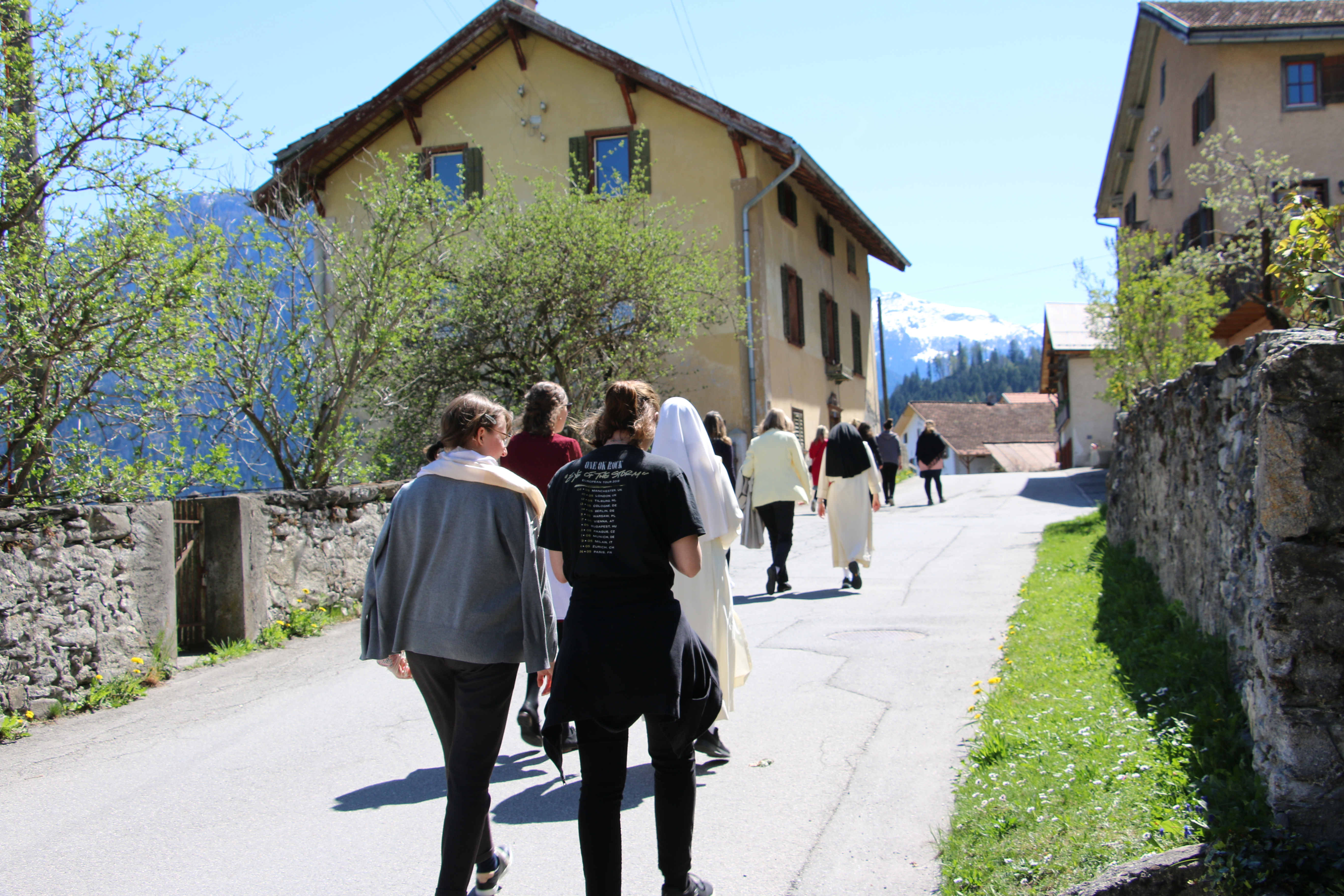 Angelehnt an der dominikanischen Spiritualität, wo es heisst: «Betrachten und das Betrachtete weiterschenken», bekamen die Teilnehmerinnen die Möglichkeit anhand einer Bibelversen Sammlung über die Eucharistie, sich mit zwei Bibelversen zu befassen und persönlich zu betrachten. Nach der Karfreitagsliturgie wurde auf einem Spaziergang in Kleingruppen, welche die jeweiligen gleichen Bibelverse hatten, ausgetauscht, bevor wir sie dann am Karsamstag alle gemeinsam besprachen. Es gab spannende Diskussionen und wir wurden tiefer in das Geheimnis der Eucharistie hineingeführt. Ein anderes Element war der Hl. Albertus Magnus, ein Dominikaner, welcher ein Werk über die Eucharistie geschrieben hat und auf einer anderen Weise, das Verstehen über den Leib der Liebe erläuterte.