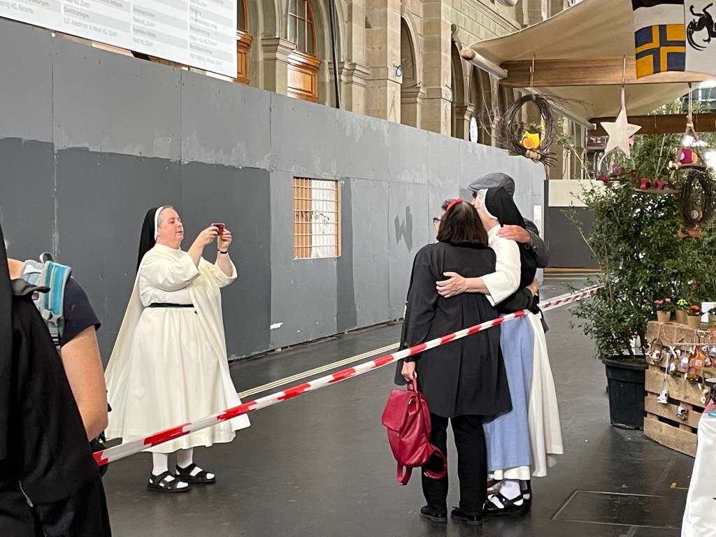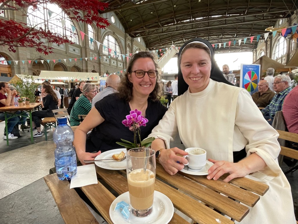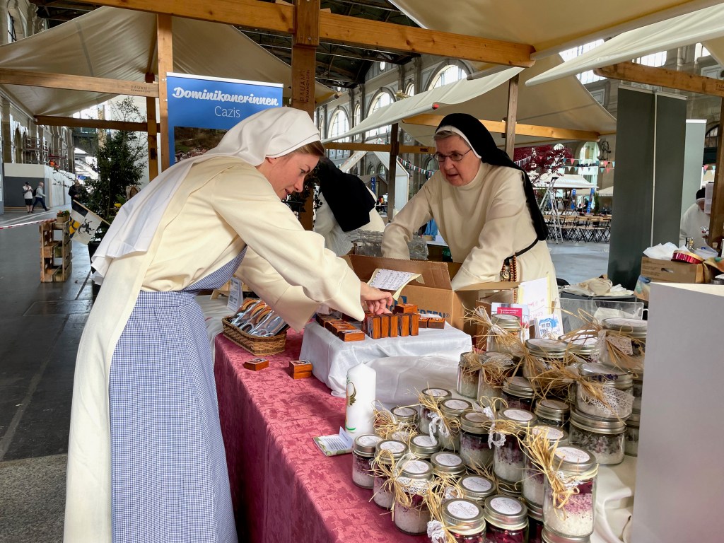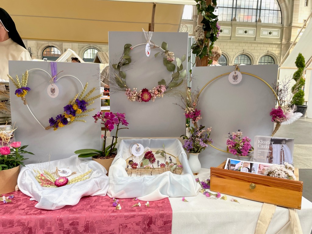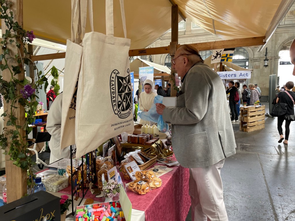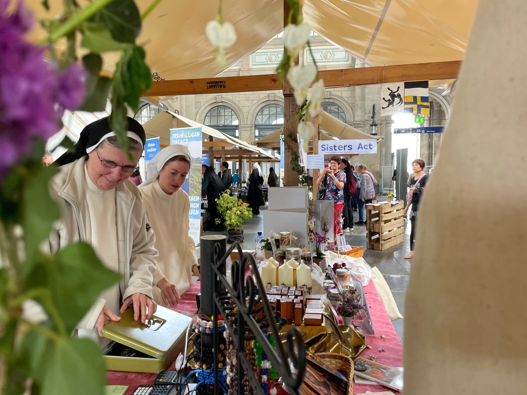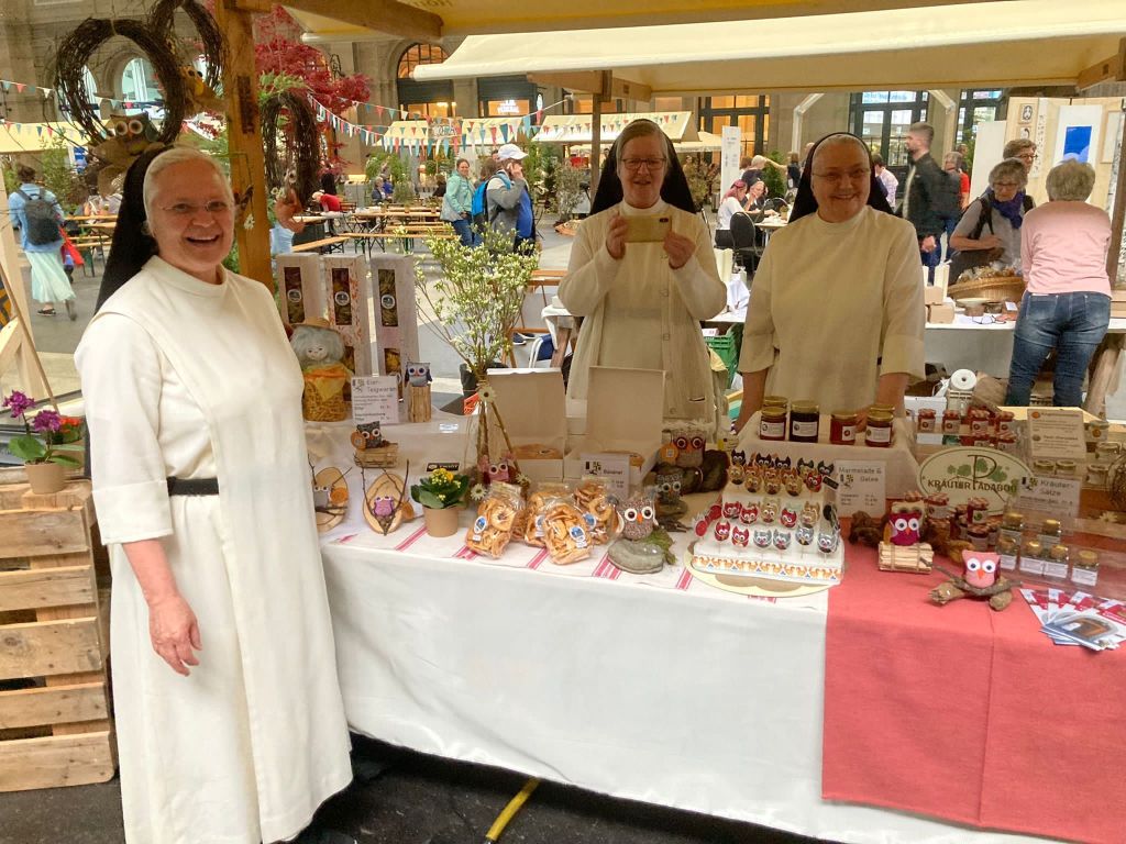 In den letzten zwei Wochen war viel los bei uns. Am 5. und 6. Mai waren wir mit zwei Ständen am Klostermarkt im Zürich Hauptbahnhof vertreten. Sr. Priska und Sr. Andrea führten einen Stand mit Lebensmittel wie Nusstorten, Kräutersalze aber auch Handarbeiten wie gehäkelte Eulen und vieles mehr. Wir hatten wunderschöne Blumenkränze aus Trockenblumen, Rosenkränze, Badesalz und ganz neu gedruckte Klostertaschen. Wer es verpasst hat, sie sind in unserem Klosterladen erhältlich. 😉