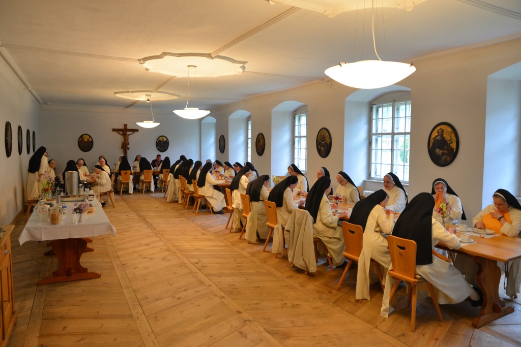 Im vergangenen Monat machten wir mit der (fast) ganzen Gemeinschaft einen Ausflug. Nach der Hl. Messe und Frühstück wurden die Busse und Autos mit Schwestern gefüllt und wir fuhren los. Die erste Station war Feldkirch, wo wir in der Schlosswirtschaft Schattenburg die berühmten übergrossen Schnitzel, mit feinen Pommes frites genossen.