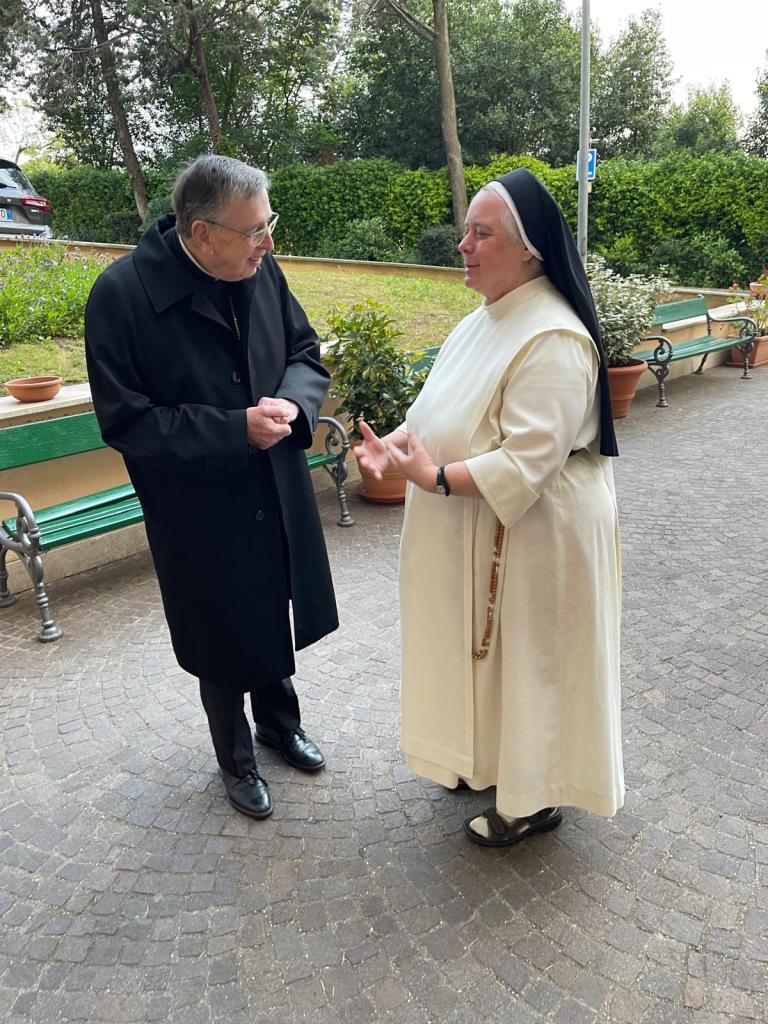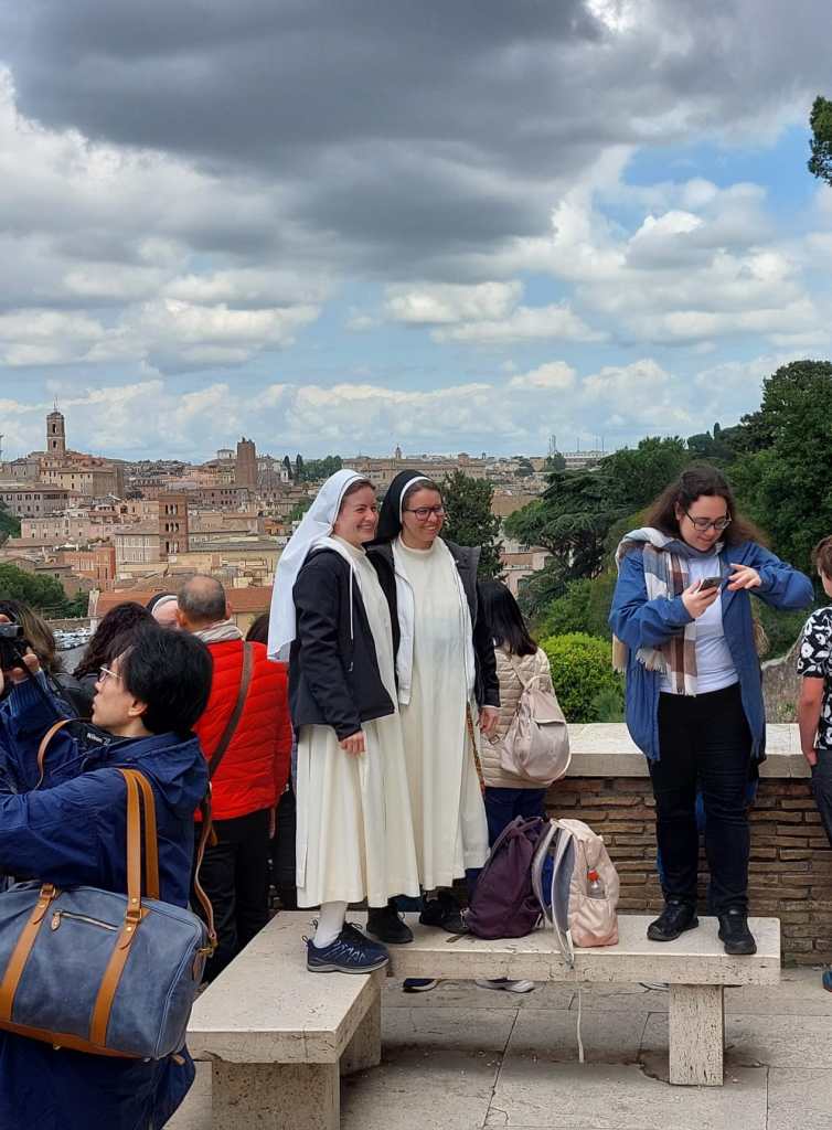 Um einige Medaillen reicher und Euro ärmer geht es weiter auf den Monte Mario. Wir reisen zusammen mit Don Hanspeter und Paul Badde, einem deutschen Journalisten und Autor. Auf dem Monte Mario befindet sich in einem dominikanischen Klausurkloster eine sehr alte wundertätige Ikone, die Advocata. Sie ist auch die Vorlage für die Ikone der „Mutter der Reform“ bei uns im Kloster in Cazis.
