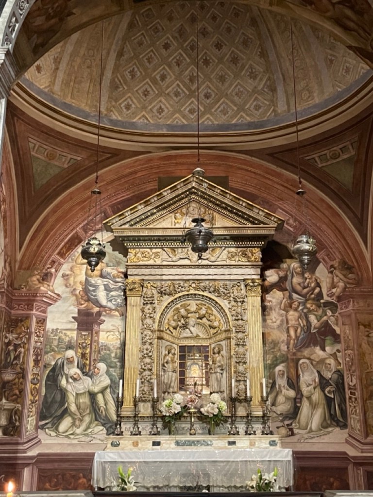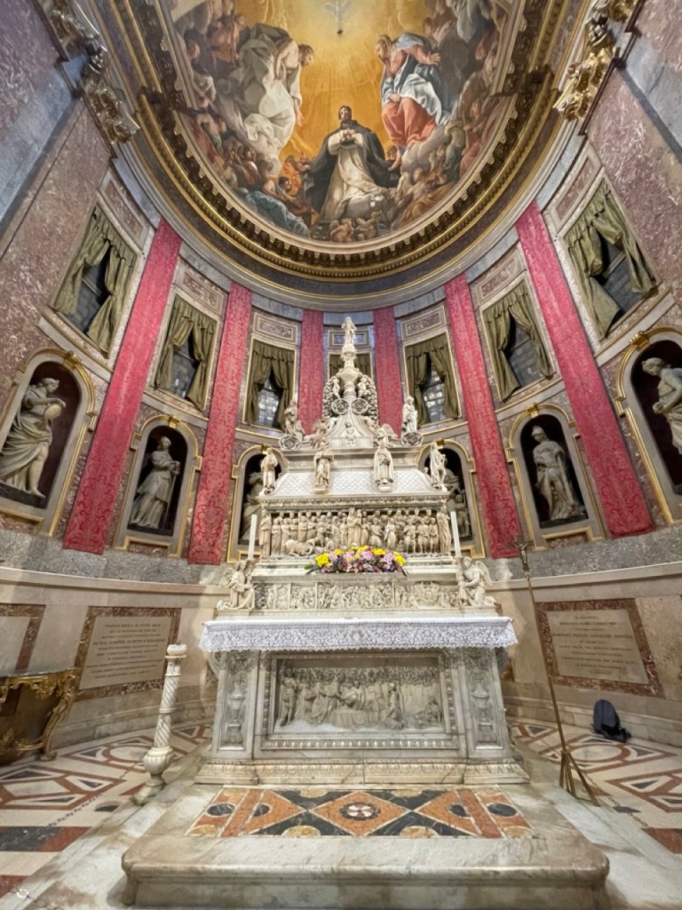 Das Kloster ist wirklich ein absoluter Geheimtipp. Es ist vollgestopft mit dominikanischen Reliquien. Hier gibt es noch ein Teil von der Hl. Katharina, eine Hand. Trotzdem ist es praktisch völlig unbekannt. Man kommt auch nicht einfach so hinein.
