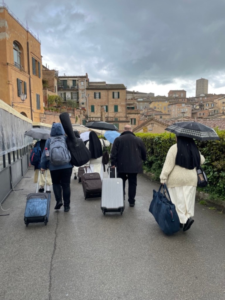 Es ist 6:00 am Montagmorgen, also eigentlich Worte mit denen nichts Gutes beginnt aber an dem Montag hat sich das frühe Aufstehen gelohnt. Wir machen uns auf dem Weg zu einigen dominikanischen Stätten in Italien. Wir, das sind ca. 15 Schwestern.