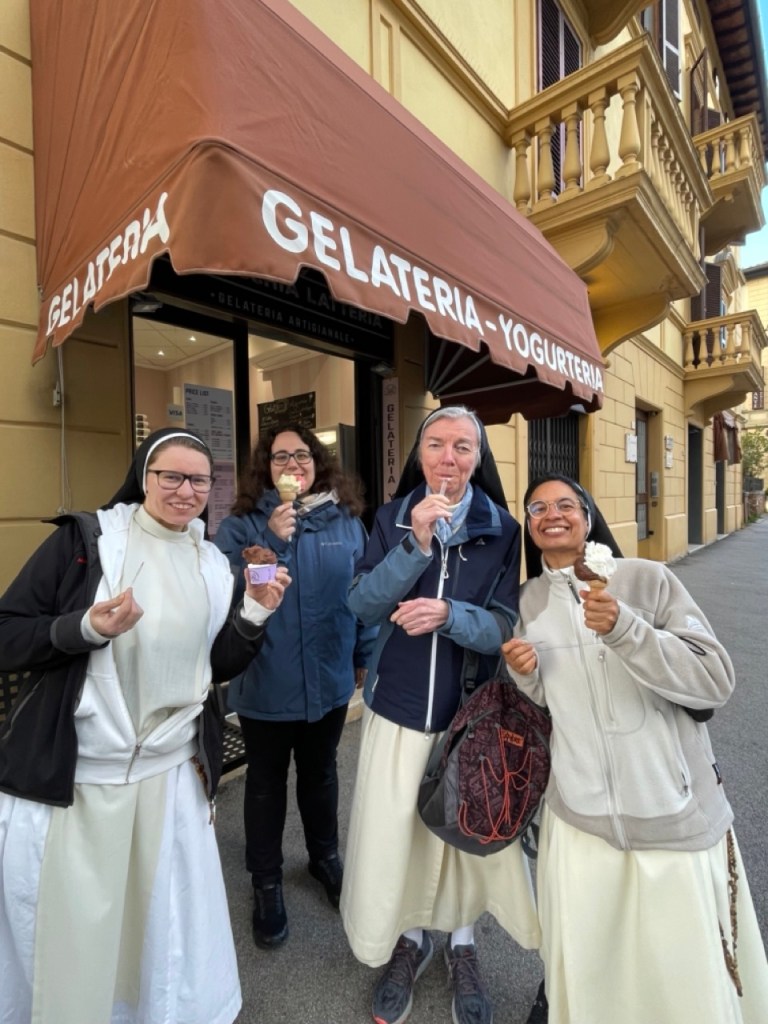 Und nun Freizeit und ab in die Shops. Siena ist ein unglaublich schönes Städtchen. Es hat allerdings etwas ganz Spezielles, was es sonst nirgends gibt, einen Devotionalienladen mit dominikanischen Dingen. Zudem gab es noch einen Sconto für Dominikanerinnen. Aber auch die Gelati soll hier nicht unerwähnt bleiben. Ach ja, und das grandiose Abendessen.