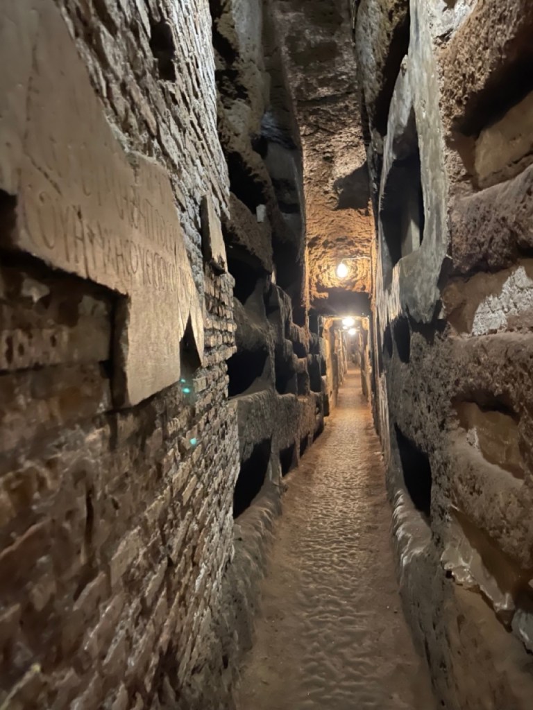 Wenn wir schon ausserhalb der Stadtmauern sind, geht es direkt weiter zu den Domatillenkatakomben. Die Führung hier ist vermutlich die beste der ganzen Reise. Der Führer ist ein geborener Prediger, er wäre ein sehr guter Dominikaner. Aber ja wir gönnen ihn auch den Steyler Missionaren. Auch hier wird gerade mal mit einigen historischen Missverständnissen aufgeräumt.