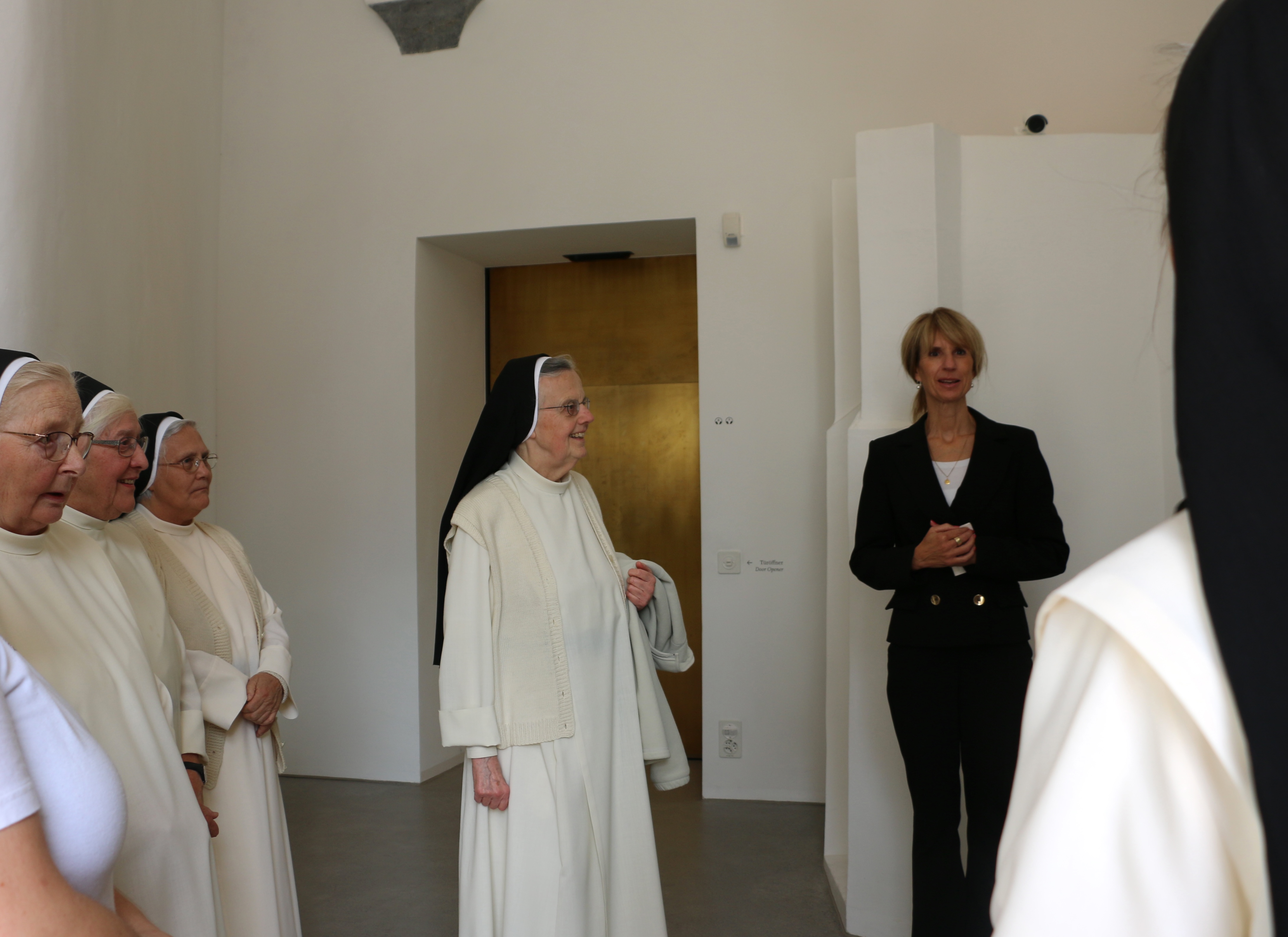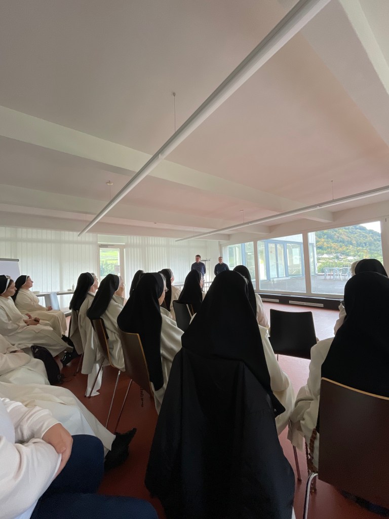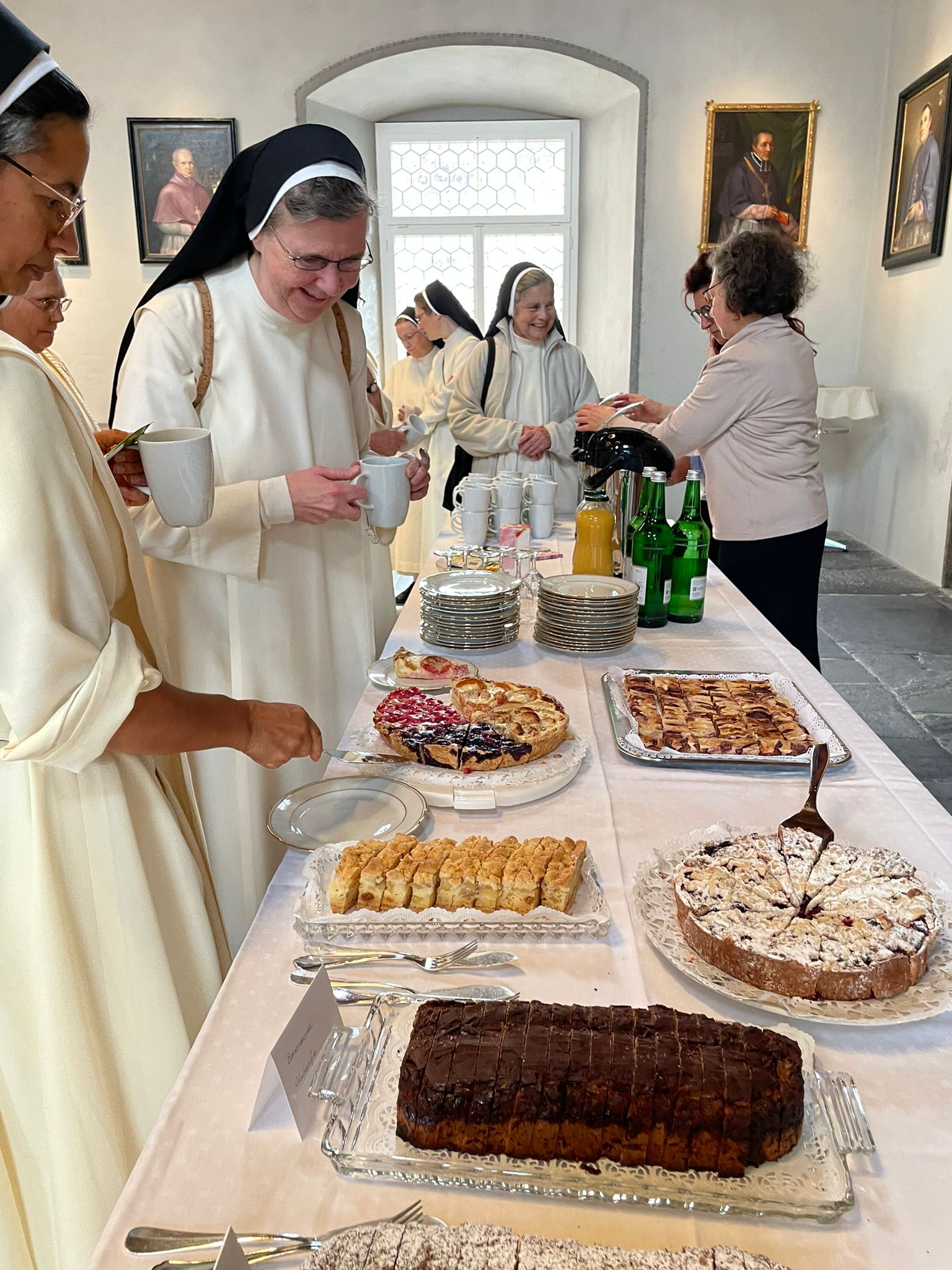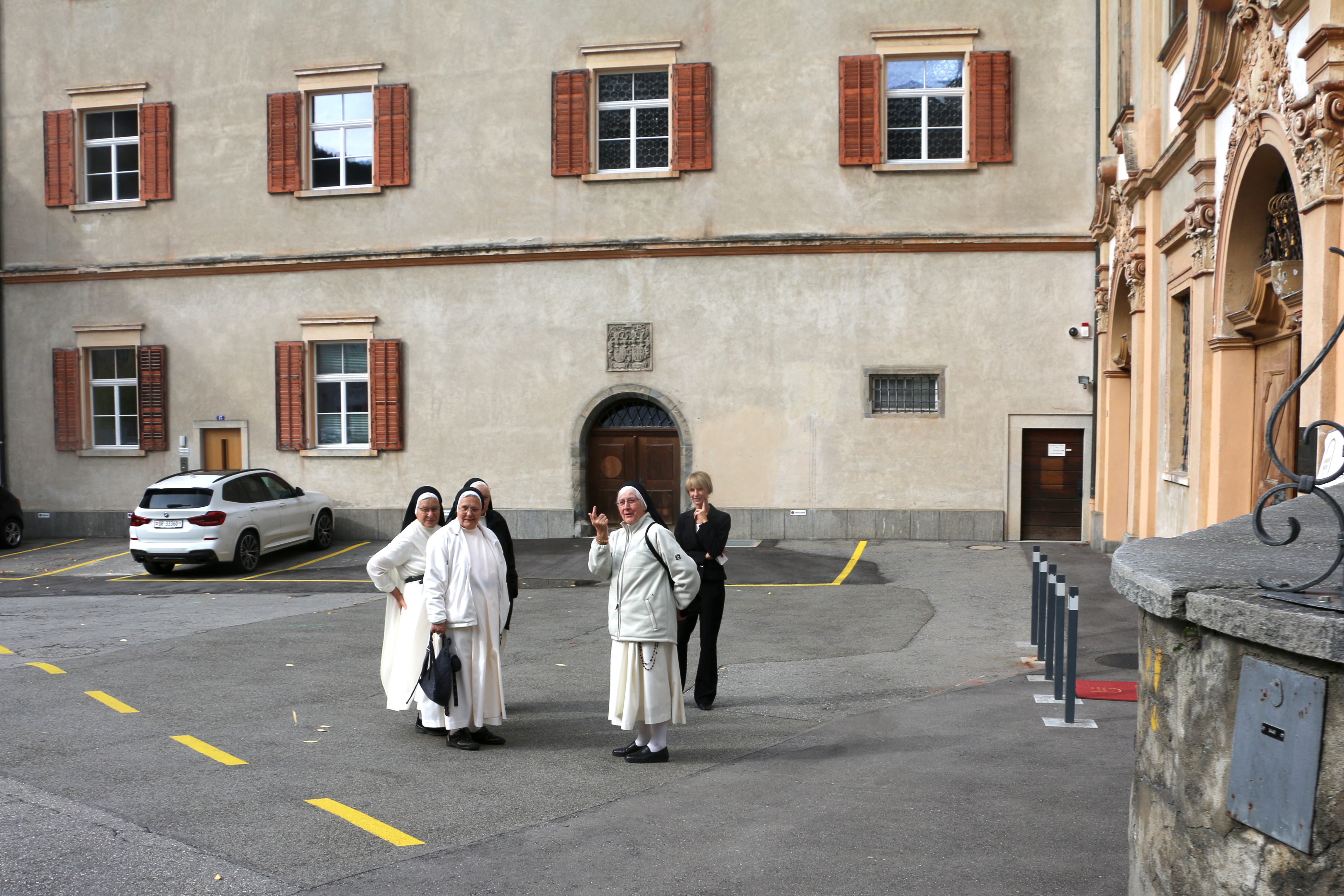 Pünktlich um 9:30 Uhr geht es los: Zwei Autos und zwei kleine Busse voller fröhlicher Schwestern fahren nach Chur. Ein aufregender Tag mit Besichtigungen, Führungen und Begegnungen erwartet uns!
