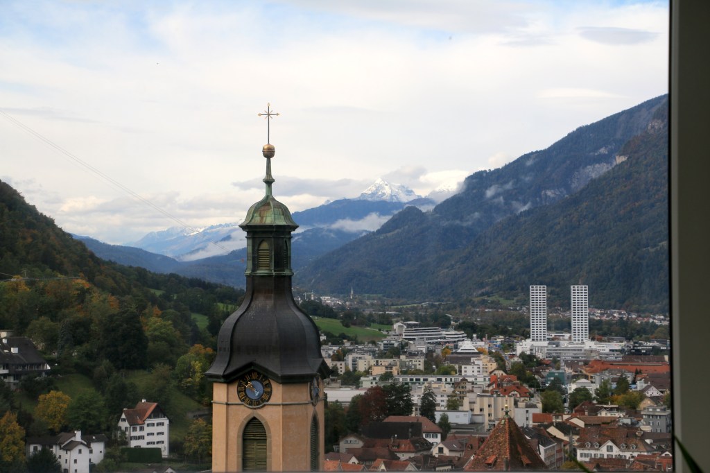 Der Tag beginnt an der Theologischen Hochschule Chur im Terrassenraum. Der Aufstieg über die Stufen hat sich gelohnt – der Ausblick ist einfach fantastisch! Wir werden herzlich von Sr. Manuelas Vorgesetzten empfangen, die uns spannende Informationen zur Geschichte der Hochschule und des Priesterseminars geben. Früher befand sich hier ein Prämonstratenserkloster, und Chur, als alter Bischofssitz, hat viele geschichtliche Schätze zu bieten.