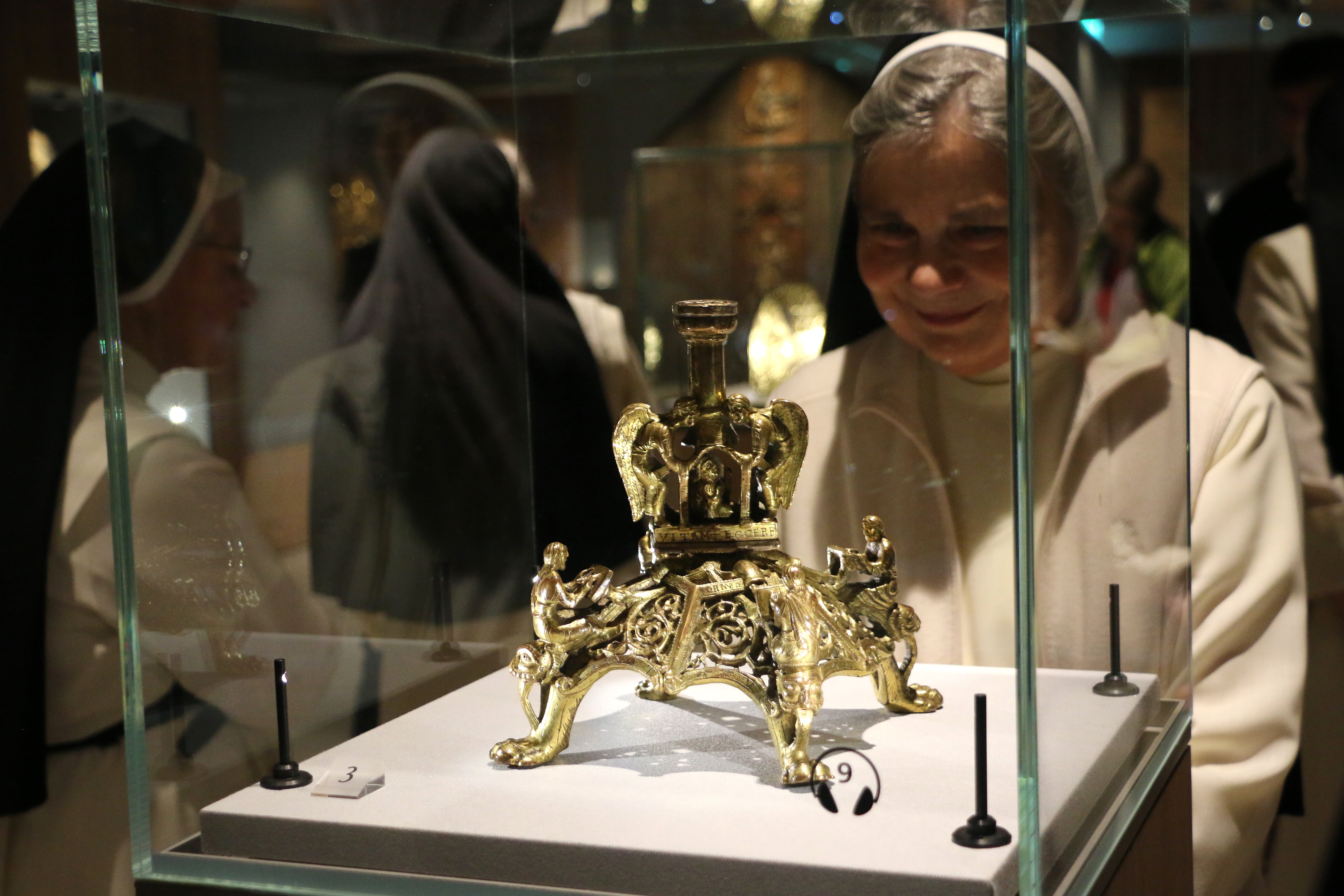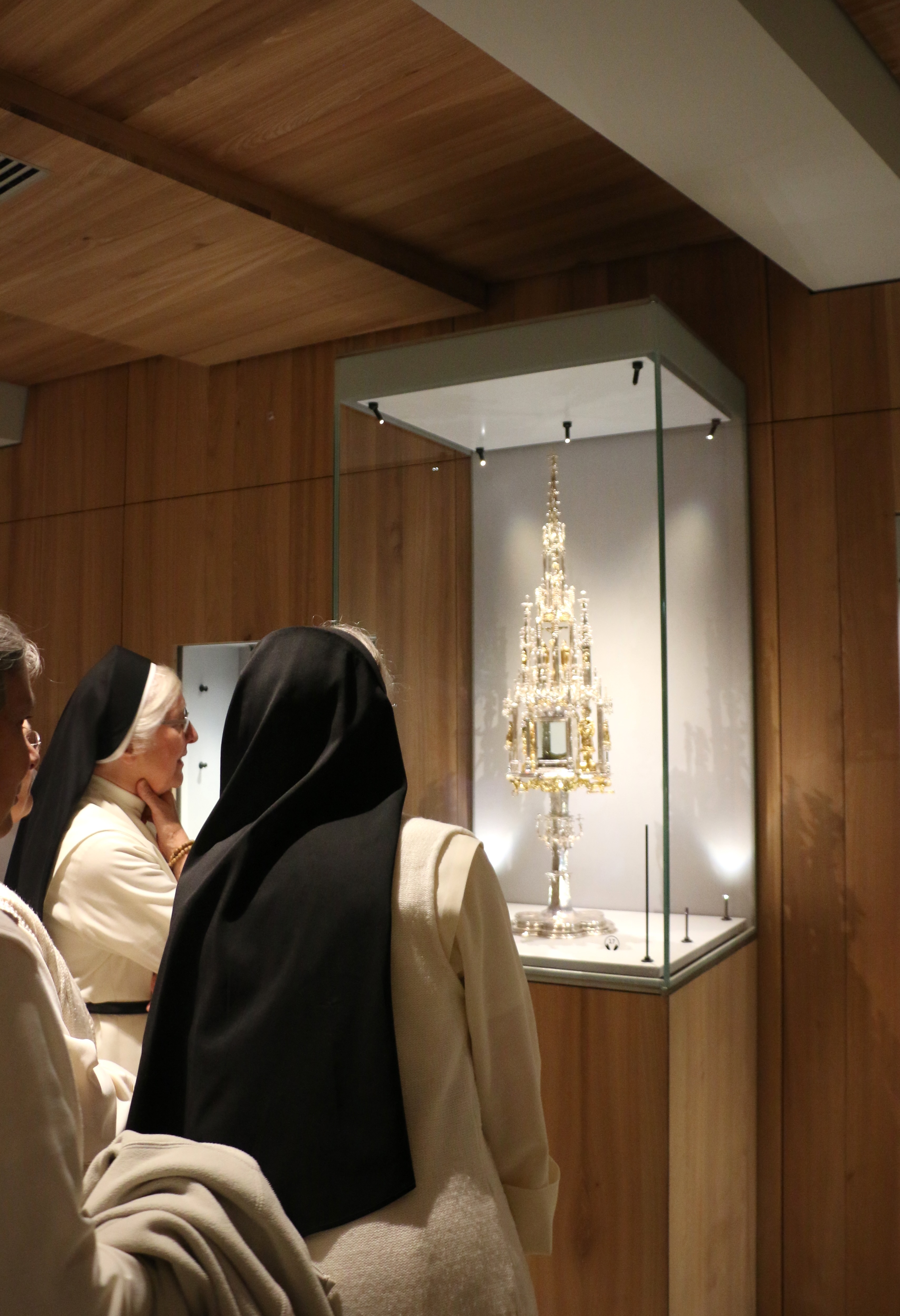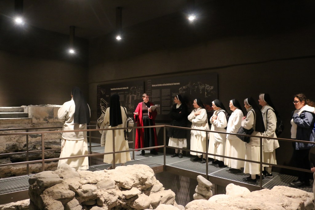 Jetzt teilen wir uns auf: Einige Schwestern besuchen das Domschatzmuseum, während die anderen die freie Zeit benützen, um die Kathedrale und die Altstadt zu erkunden. Das Domschatzmuseum betreten wir durch eine goldene Tür. Drinnen gibt es nicht nur viel Gold, sondern auch beeindruckende Reliquiare, die den Glauben unserer Vorfahren widerspiegeln. Ein besonderes Highlight ist eine alte Kasel. Unsere Führerin erzählt uns so viel, dass wir fast nicht mehr zu den eindrucksvollen Todesbildern im Keller gelangen. Im alten Weinkeller entdecken wir eine Wand aus dem Mittelalter, die verschiedene Szenen zeigt, in denen Menschen mit dem Tod, dargestellt durch ein Skelett, tanzen. Wir verlieren ein wenig die Zeit, aber jede Minute war es wert!