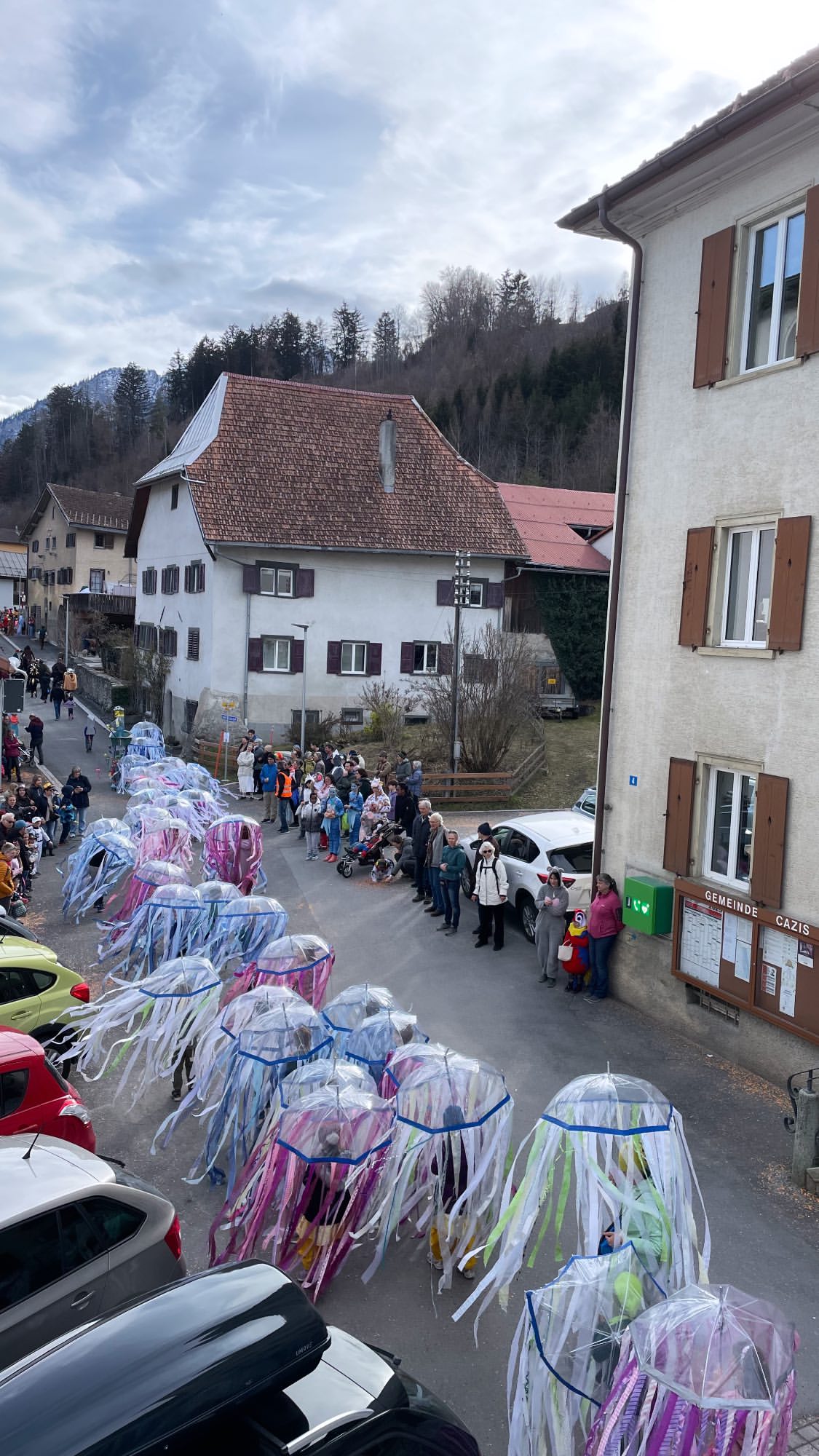 Auch der Fasnachtsumzug in Cazis konnten wir aus einem Logenplatz aus mitverfolgen. Die verschiedenen Gruppen haben ihr Bestes gegeben und uns fleissig Süsses zugeworfen.