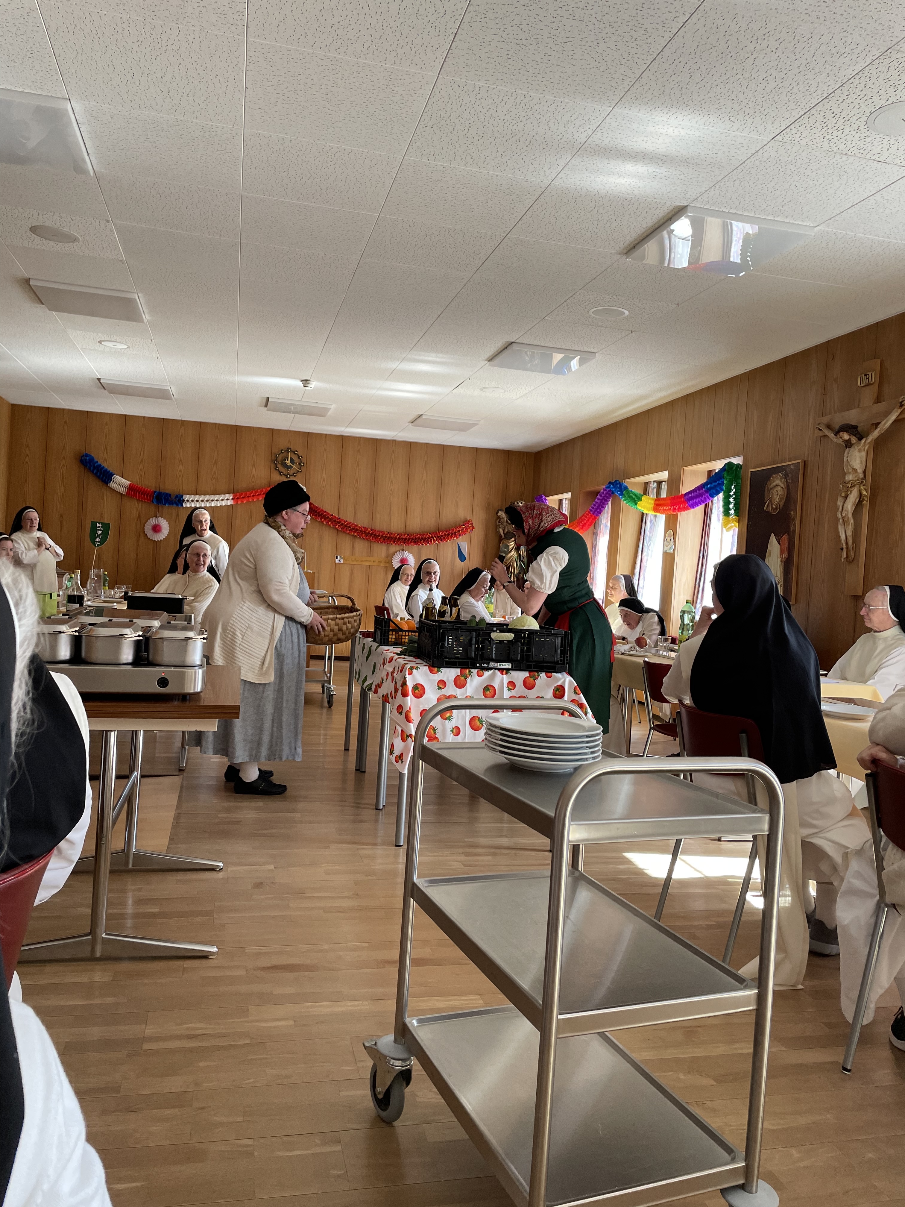 Wenn im Kloster gejodelt, gelacht und Film geschaut wird, dann ist wahrscheinlich Fasnacht. Auch dieses Jahr haben wir lustige und heitere Stunden verbracht. War es auf dem Bauernhof mit Kuh und feiner Meringue, auf dem Markt oder bei einem spannenden Spielfilm, für alle war etwas dabei.