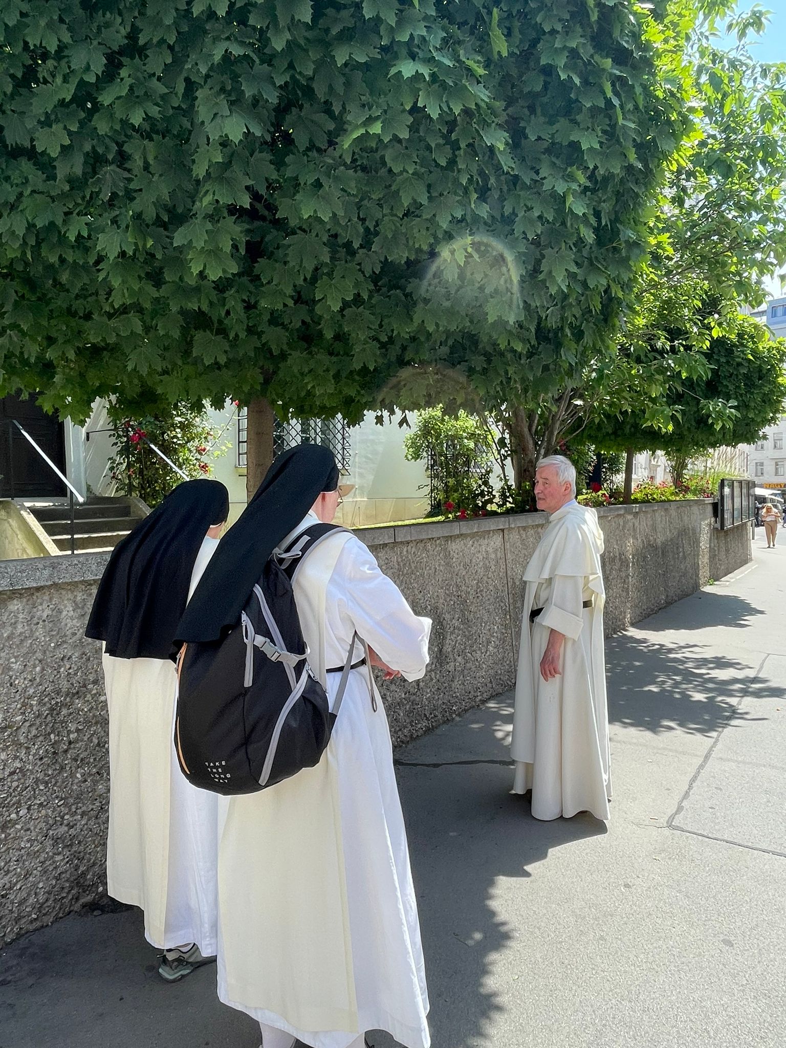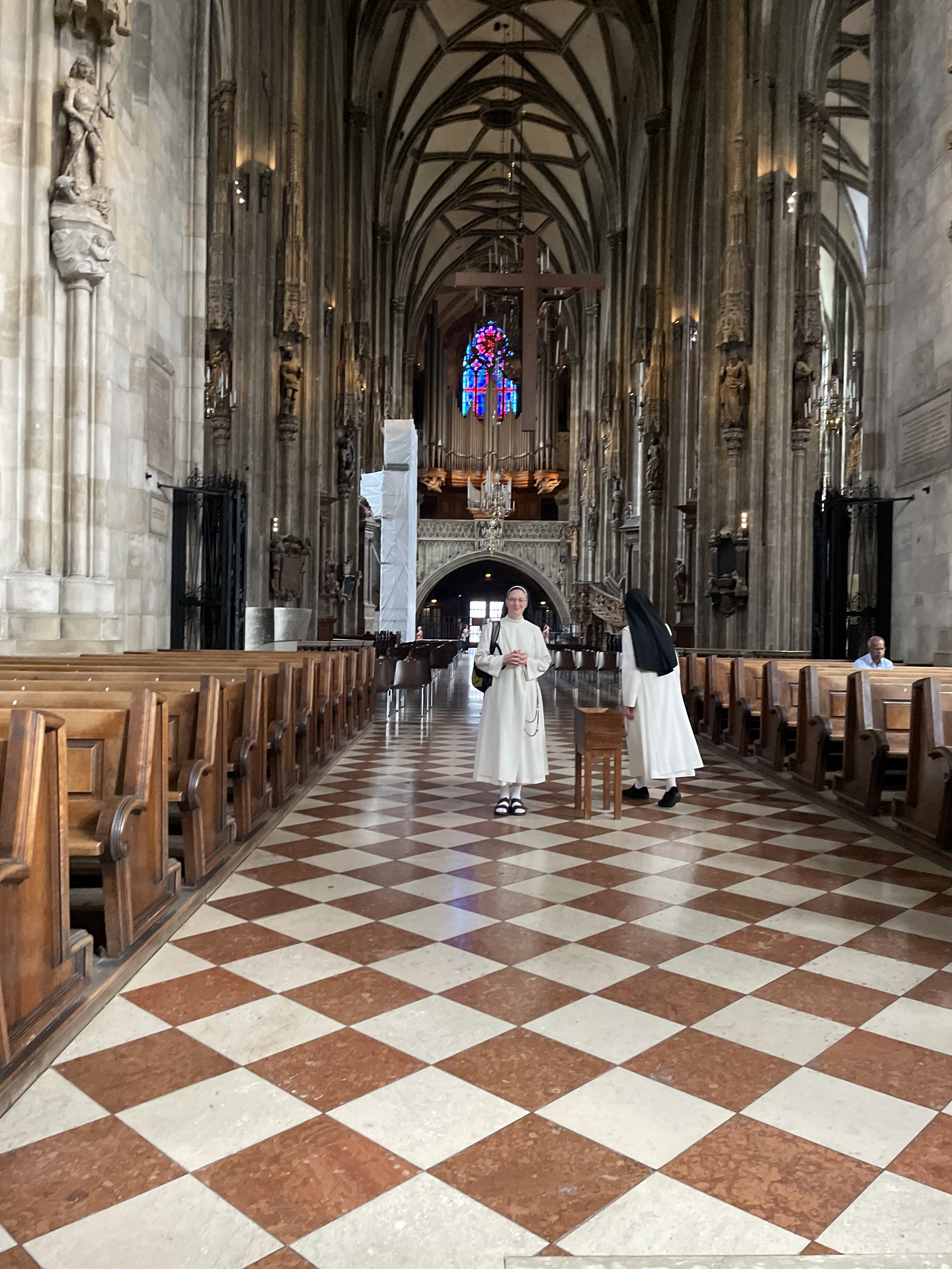 Mit dem Juniorat haben wir eine Woche Ferien in Wien verbracht. Bereits die Zugreise war ein Spektakel. Von Sargans bis Wien haben wir unglaubliche Täler und Berglandschaften durchstreift. Sogar einen Blick auf unser Kloster in Bludenz konnten wir erhaschen. Durch die Tiroler Alpen über Innsbruck am Chiemsee vorbei näherte sich Wien. Wie die Strecke kleiner wurde, so wurde unsere Vorfreude grösser.