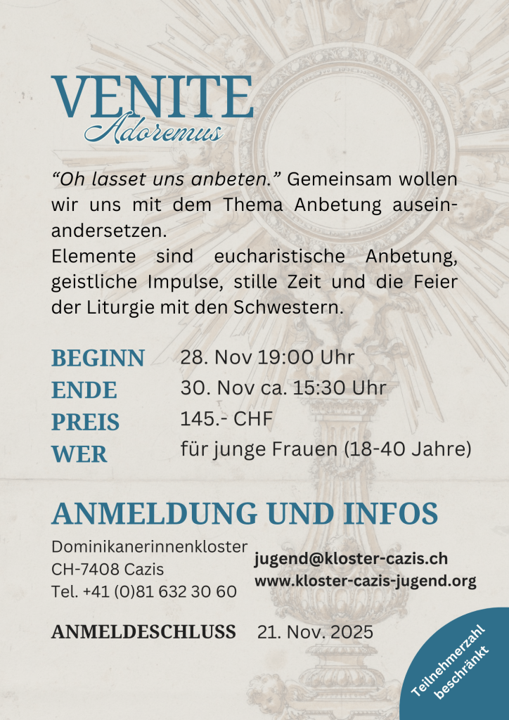 Sehr tief war auch das Adoray, das wir anschliessend in der Klosterkapelle gefeiert haben. Das gemeinsame Singen, der Impuls von Pater Maximilian sowie die eucharistische Anbetung haben auch die Schwestern beeindruckt.