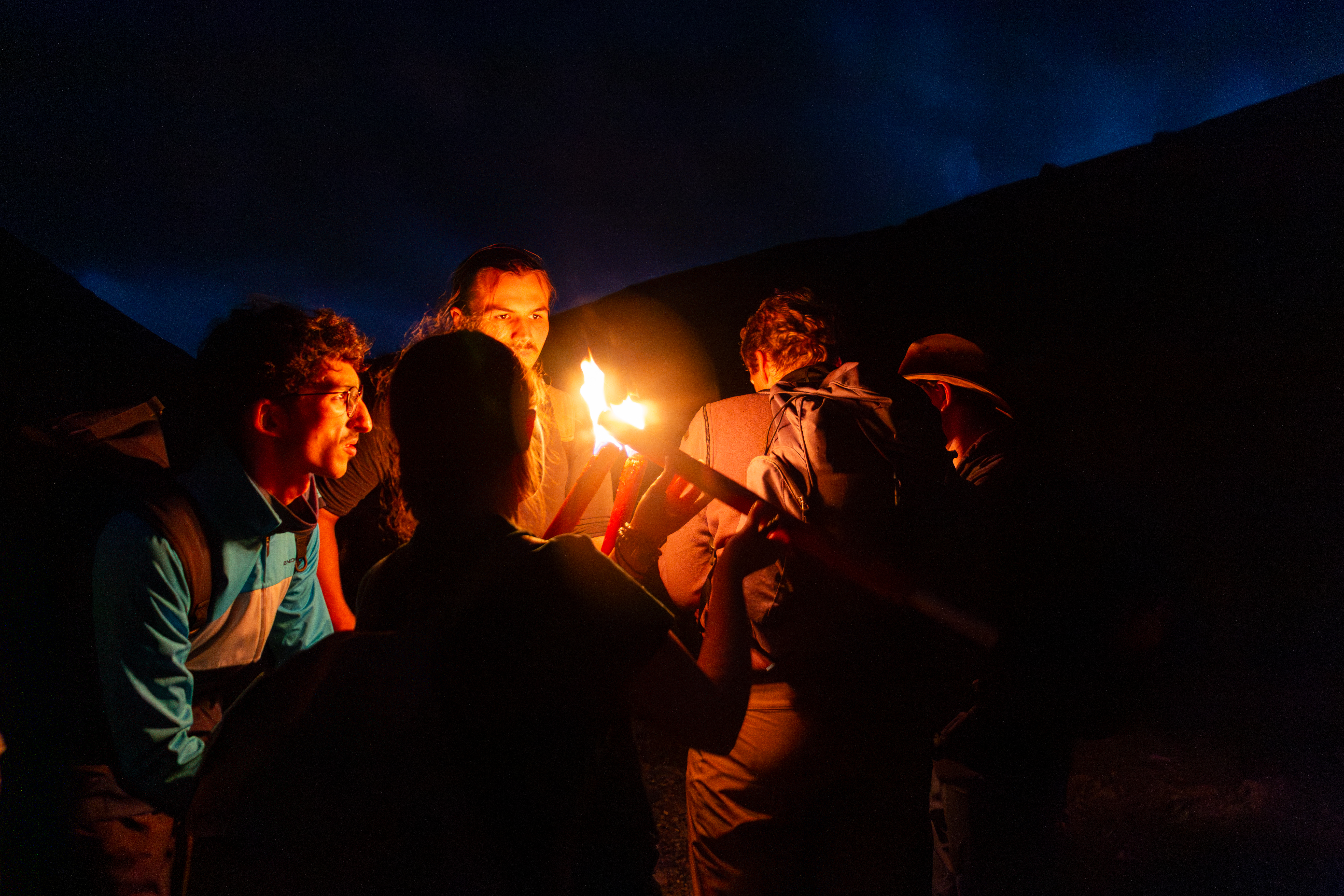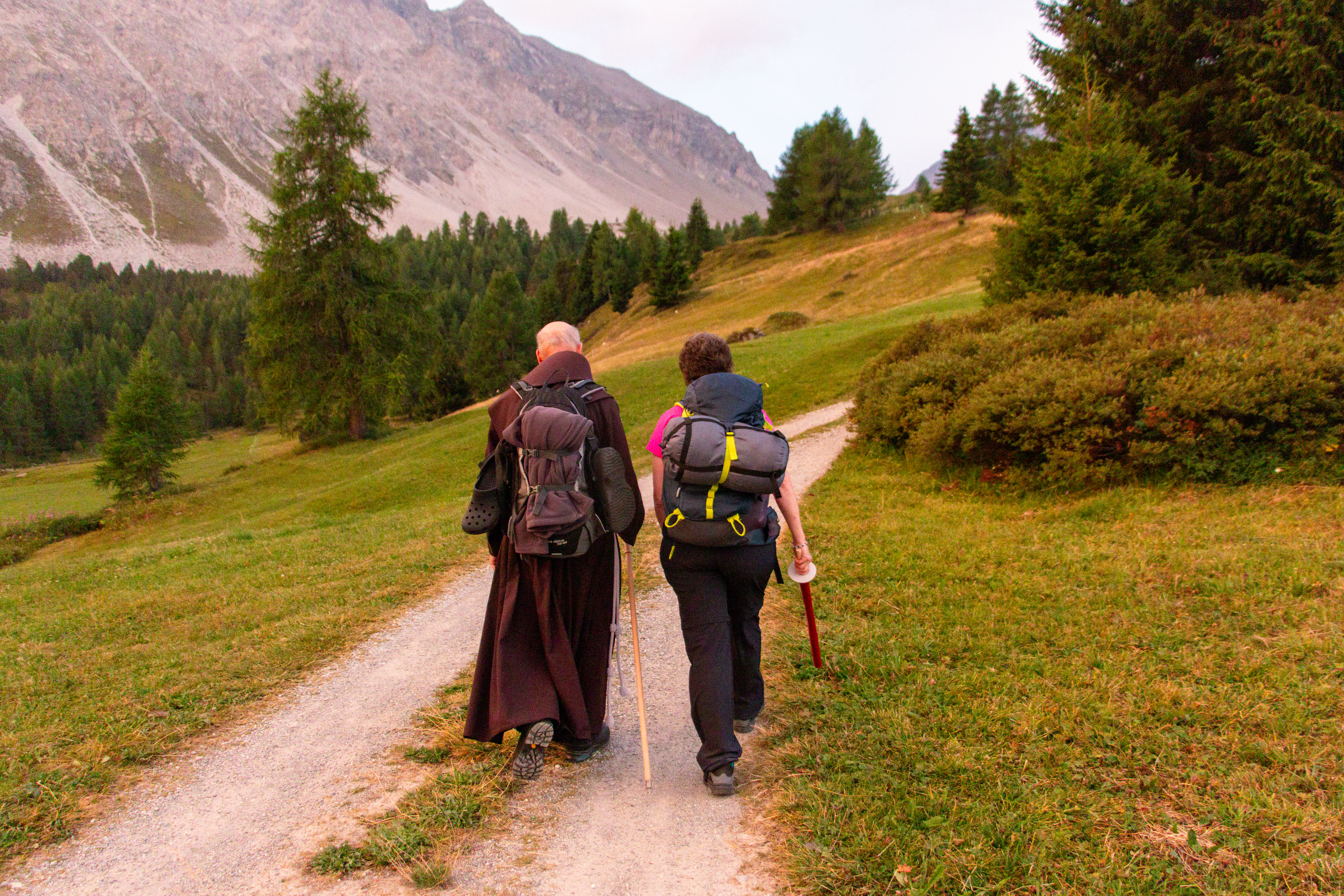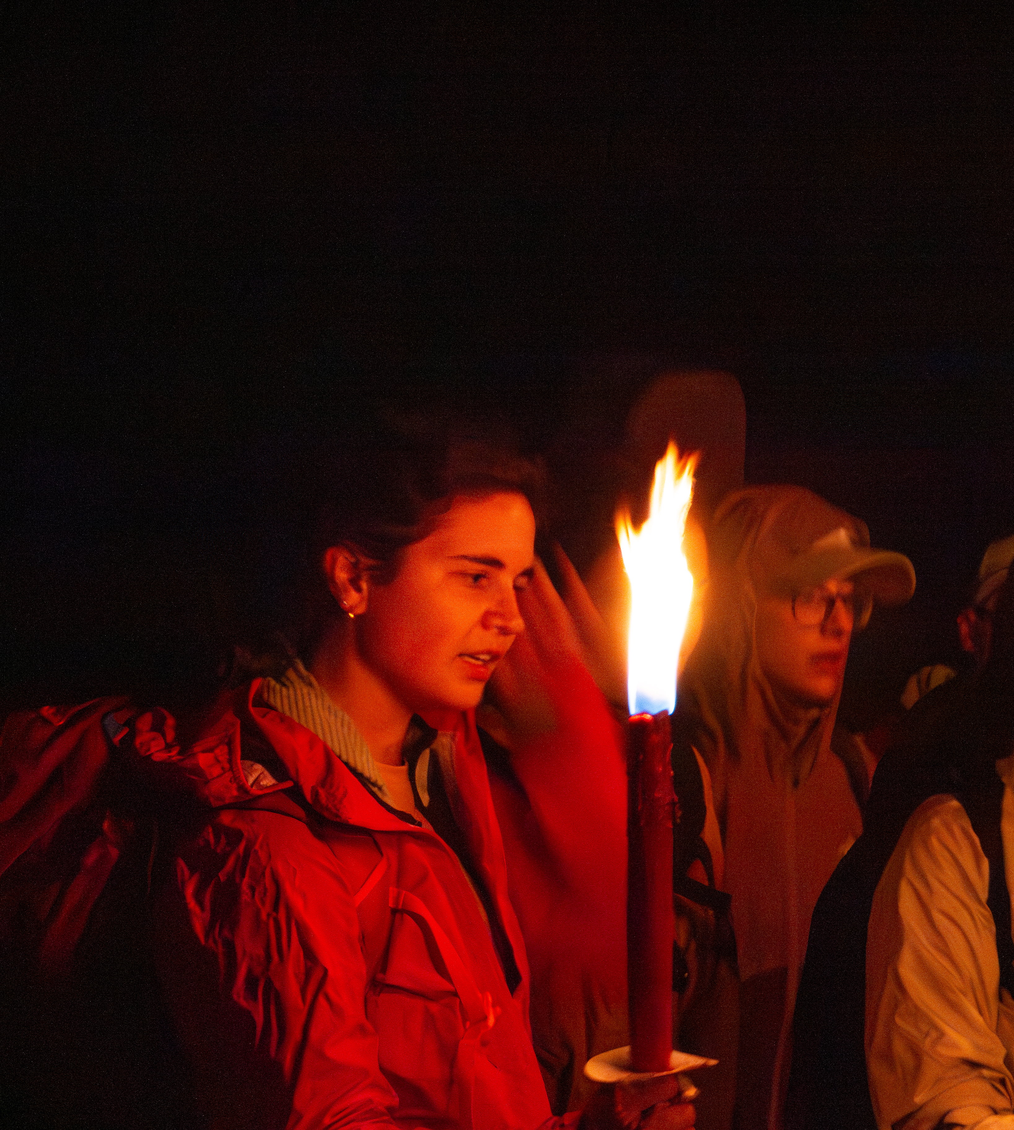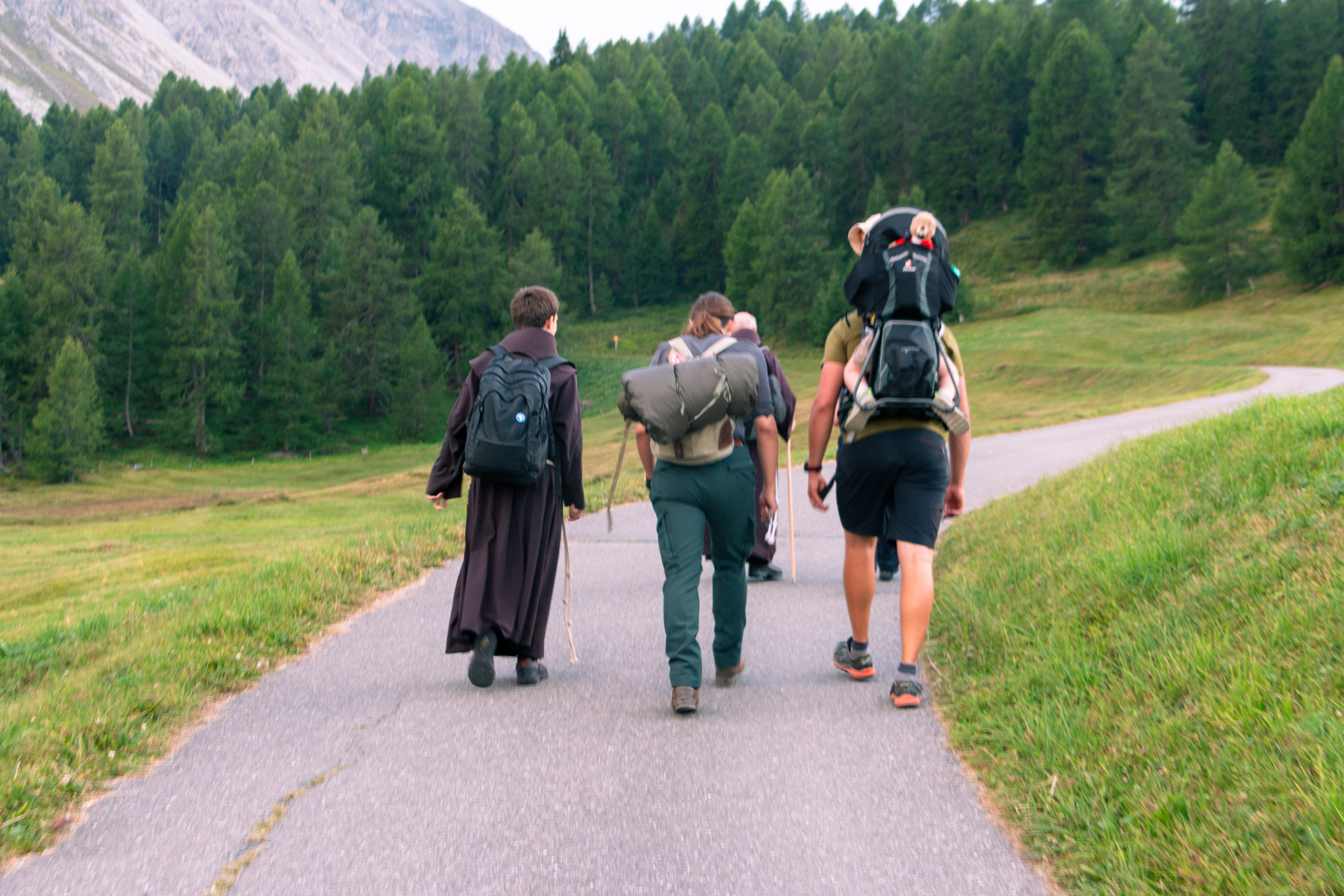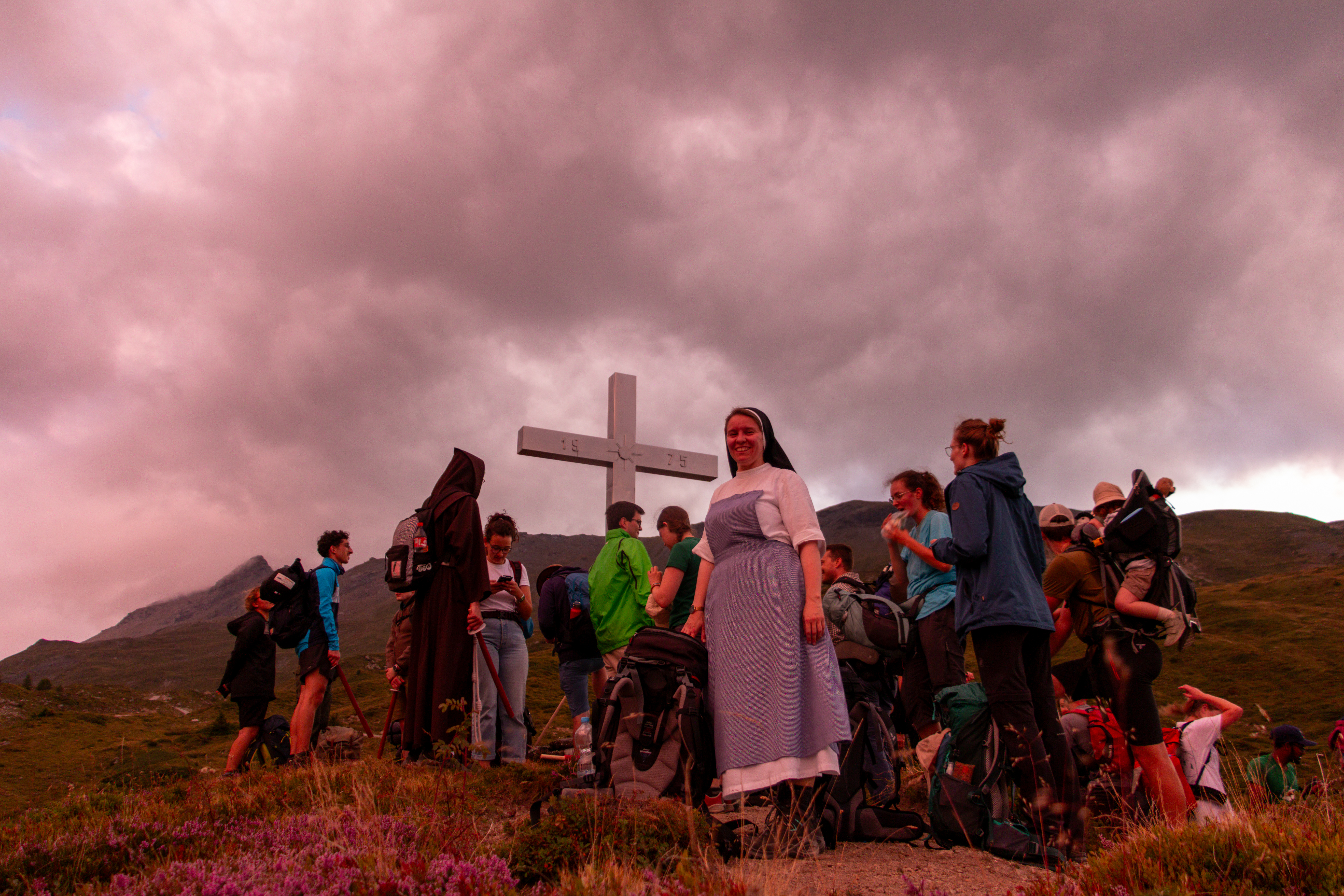 Wir machten uns am Freitagabend bei der Alp Munter mit etwa 50 Pilgerinnen und Pilgern passend zum Heiligen Jahr, mit viel Freude auf den Weg. Ausgerüstet mit Fackeln für die letzte Wegstrecke im Dunkeln, ging es bergauf.