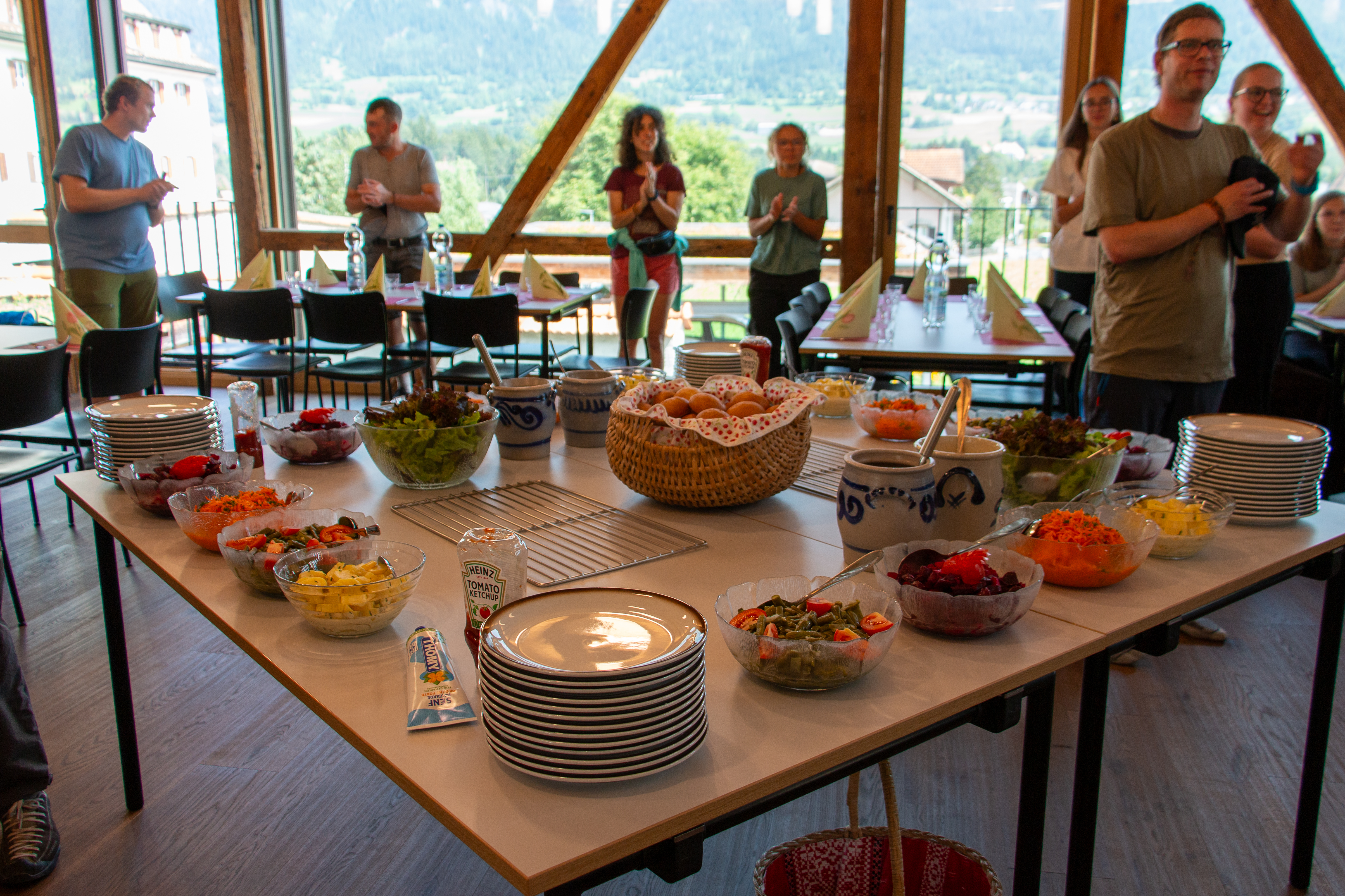 Nachdem alle mit und ohne Panne in Cazis angekommen sind, erwartete uns ein reich gedeckter Tisch. Wir begrüssten auch jene, die leider nicht mit nach Ziteil wandern konnten aber jetzt dafür dazugestossen sind.